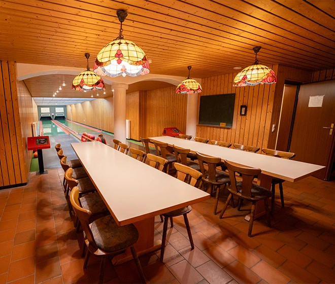 Freuen Sie sich auf spannende und unterhaltsame Stunden auf unserer Kegelbahn im Hotel National. Ob mit der Familie, Freunden oder Kollegen – erleben Sie gemeinsam fröhliche Spiele und stärken Sie Ihre Teamfähigkeit. Unsere Kegelbahn bietet Ihnen die Möglichkeit, Ihr Können unter Beweis zu stellen und gleichzeitig eine Menge Spaß zu haben. Genießen Sie die gesellige Atmosphäre und lassen Sie den Abend mit spannenden Kegelrunden ausklingen.